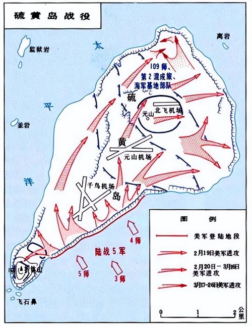 硫磺岛战役中美军作战全过程示意图