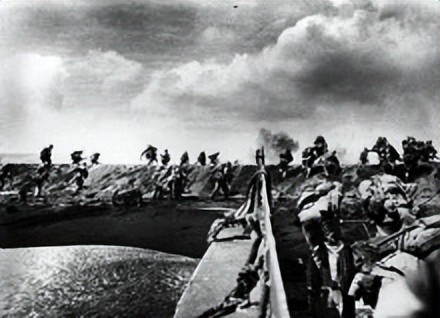 登陆部队海军陆战队三个师,以陆战第4、第5师为一梯队,陆战3师为预备队,在直接火力准备的同时,第一批登陆部队八个营完成了换乘。