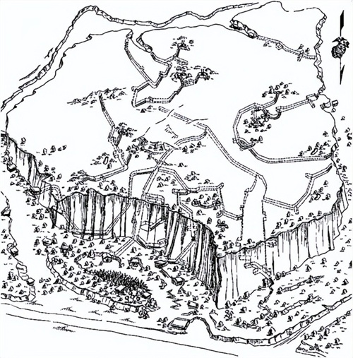 由美国海军第31建设营绘制的362a高地的草图,虚线表示日军隧道