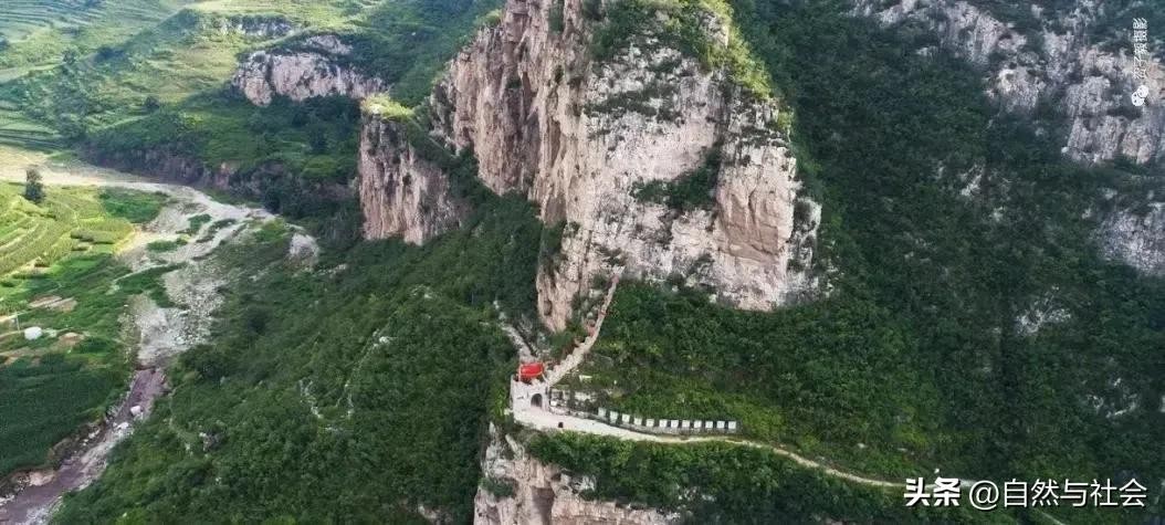 其三西口。西口是七亘村的西大门,位于七亘村西1公里处。镶建在烽台垴、旗山)半山腰悬崖绝壁拐角处的一个关阁,关阁用大青石砌筑,高4.5米,长5米。这些绝壁险峰和峡谷深渊连接为一体,构成西口天险。口内是1里多高的50度陡坡直至河湾,名“石流嘴”经两个之字形盘道入村。口外是1里多长盘山路延伸在半山腰中,上有青峰插云,下有万丈深渊(石峡沟),凡路过此处的人们无不望而生畏,大为惊叹!西口的地形极其险要,早有“奇峰摩天,隘石滑涧”之称。西口确是“一夫当关,万夫莫开”的咽喉要道。穿行于西口道路旁,灌木丛生,便于我军抵近隐蔽,不易被敌人发现,手榴弹可直接投入道路上。
