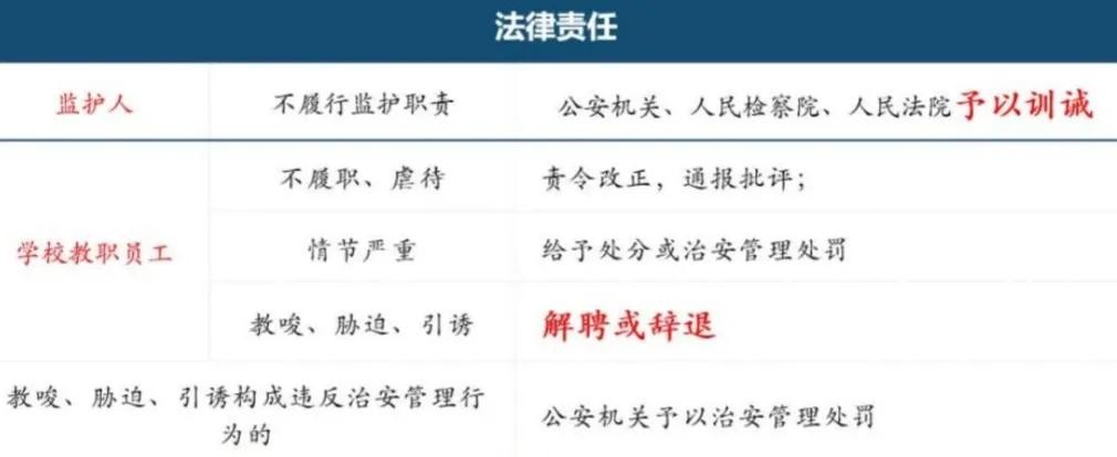 3. 教职员工教唆、胁迫、引诱未成年人实施不良行为或者严重不良行为,影响非常恶劣: 解聘(签合同)或者辞退(编制内)。