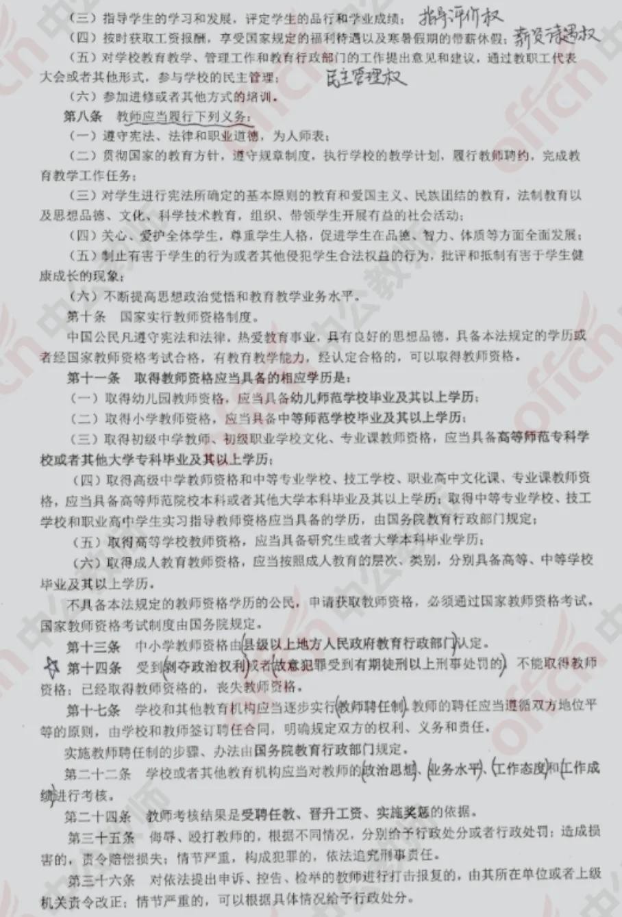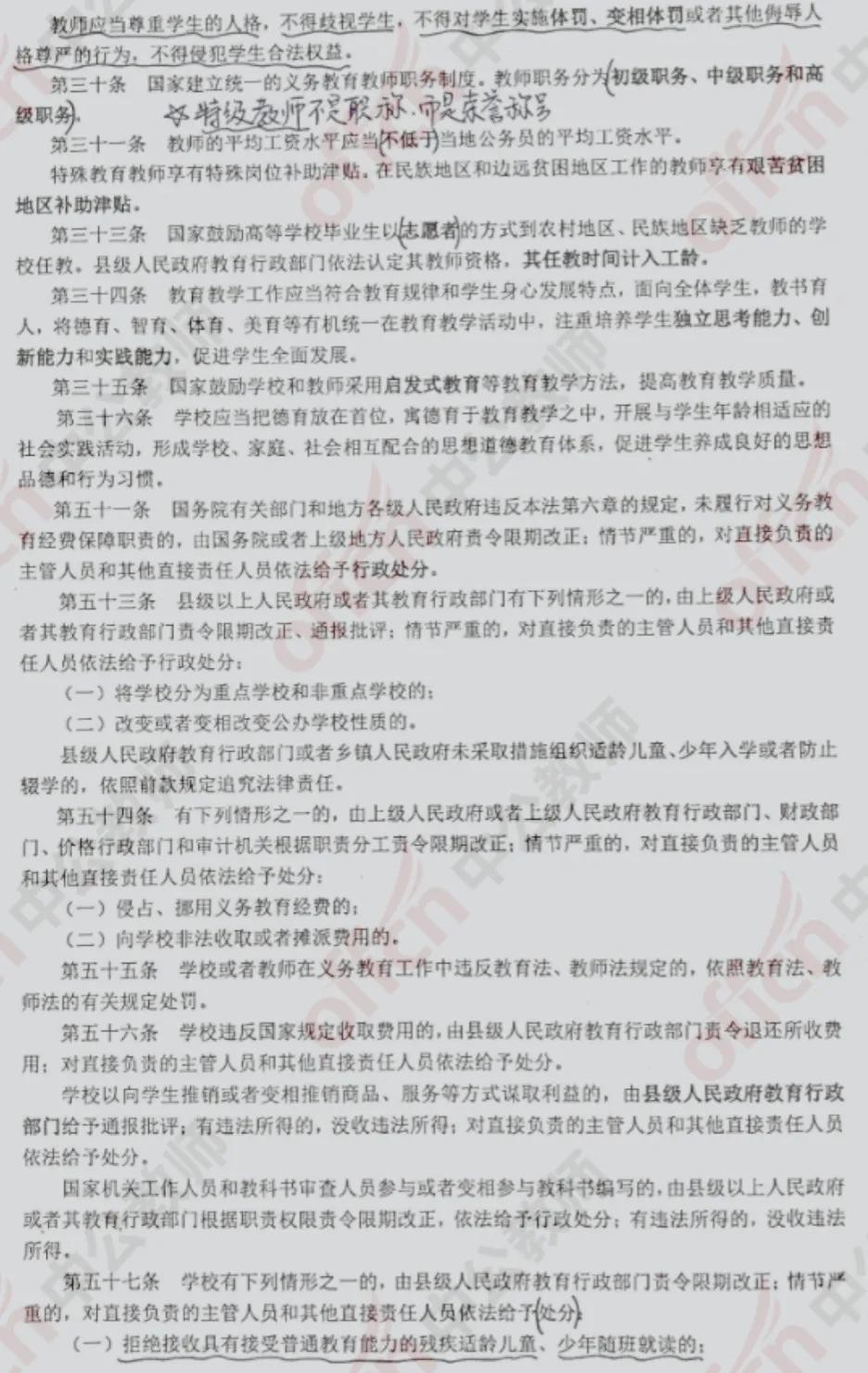 1. 第三十四条: 如果学生出现旷课、逃学,那么要及时联系父母, 告知父母 今天孩子没有来上课。