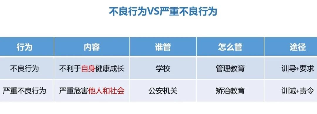 严重不良行为不仅仅伤害自己,还会伤害到社会、其他人,特殊的情况是沾毒和赌资较大的。