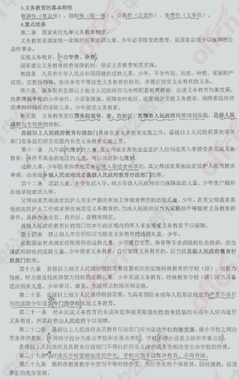 答案:优先、分离、机会、均衡、国家通用语言文字、分级、分工、国务院教育行政部门(教育部)