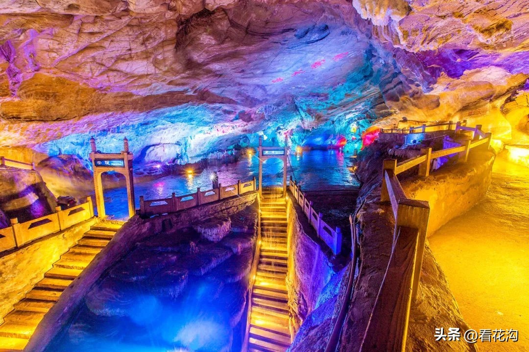 22.西峡县的著名景点-云华蝙蝠洞。位于河南省西峡县五里桥乡白河村境内,距县城6公里,距312国道2公里,距寺山国家森林公园5公里,距灌河游览区、橡胶坝5公里,距石门湖12公里,可形成西峡县城一日游的最佳线路。蝙蝠洞距南阳市126公里,距西安市384公里,距洛阳市150公里。云华蝙蝠洞属喀斯特岩溶地貌。因该洞内岩壁上布满云朵样花纹,似锦似缎,堂皇华丽,又因里面有无数蝙蝠栖息,故名“云华蝙蝠洞”。景区洞外森林茂密、鸟语花香,是一处集自然观赏、洞中探奇、生态览胜、消夏避暑为一体的旅游景点。溶洞内有地下廊道、水曲河、洞厅暗河、钟乳石等。溶洞蜿蜒曲折,走势时高时低,洞身时宽时窄,高时达60多米,低时需弯腰低头才能通过,宽时可达80米。洞中栖息着7个品种约10万只蝙蝠,其中大白蝙蝠和小耳蝙蝠系新发现的珍稀品种。
