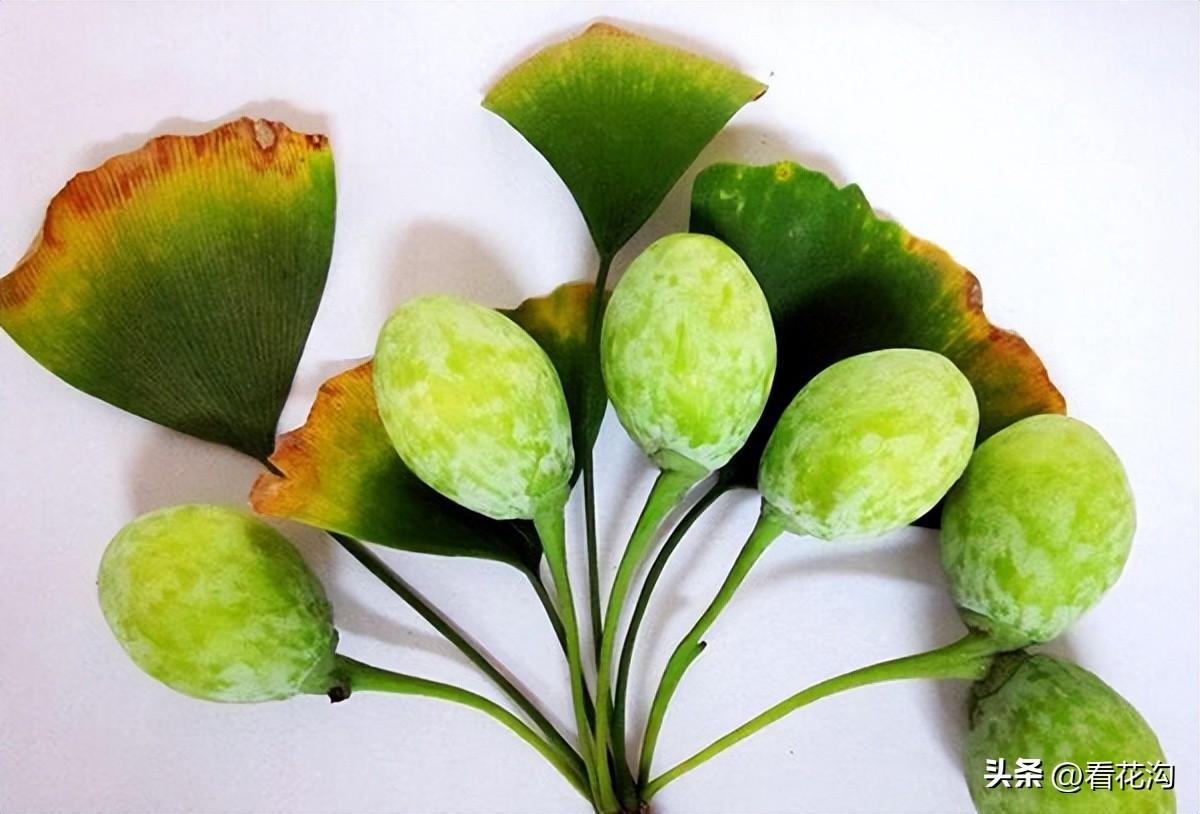 46.西峡县的著名特产-西峡白果。白果又称银杏、公孙树子。个如杏核大小色洁白如玉,其味甘、苦、涩,过食易引起腹泄。落叶乔木,高可达40米。树干直立,树皮灰色。枝有长短两种,叶在短枝上簇生,在长枝上互生或螺旋状散生于长枝,扇形,长4-8厘米,宽5-10厘米,上缘浅波状,先端中间2浅裂或深裂,基部楔形,叶脉平行,脉叉状分歧;叶柄长2.5-7厘米。花单性,雌雄异株,与叶同时开放;雄花呈下垂的短柔荑花序,4-6个生于短枝上的叶腋内或苞腋,有多数雄蕊,花药2室,生于短柄的顶端;雌花每2-3个聚生于短枝上,每花有一长柄,柄端两叉,各生1心皮,胚珠附生于上,通常仅1个胚珠发育成熟。种子核果状,倒卵形或椭圆形熟时橙黄色。