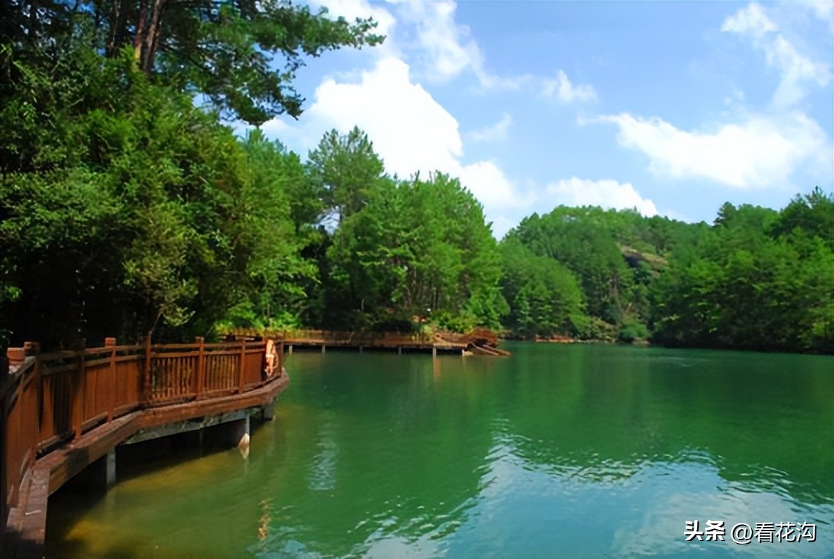20.西峡县的著名景点-西峡龙潭沟景区。位于河南省伏牛山脉腹地的西峡县双龙镇,距西峡县城30公里。景区景点集中,瀑布密集,融山秀、石奇、水澈、林茂、潭幽于一体,被誉为“中原一绝,人间仙境”。伏牛山世界地质公园核心景区于2011年成功被评为国家AAAA级景区。景区全长12公里,自然落差近千米,整个山体犹如两条巨龙盘踞,分别显现龙首、龙口、龙角和龙身。山体两岸石壁陡峭,花岗岩体雄奇壮观.景区内聚集了大小19道瀑布和72潭,群瀑叠落飞泻直下,潭深水幽奇石遍布,整个山体如两条巨龙盘卧,以瀑密、石奇、潭幽、水澈、林茂组成完整的风景体系,被誉为“中原第一瀑布群,天然奇石博物馆”。潭沟全长12公里,景区5公里,自然落差近千米,整个山体犹如四条巨龙盘踞。峡谷自下而上形成多处梯式瀑布共计19个,大小潭穴72处,一瀑一潭景色壮观。