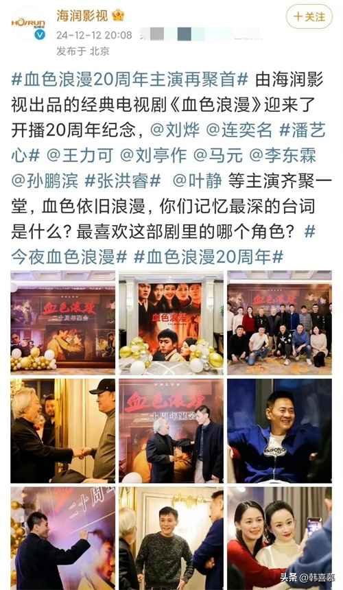 12月12日,据媒体报道称,电视剧《血色浪漫》迎来二十周年开播纪念,多位主演和演员参加。