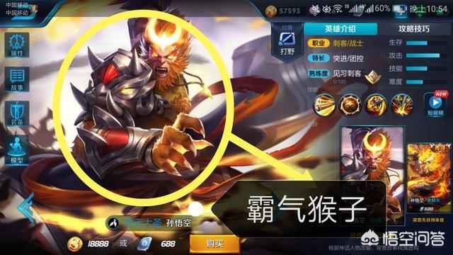 猴子,是一个操作难度挺大的英雄,但是发育起来,简直无敌,多练习练习可以上手。