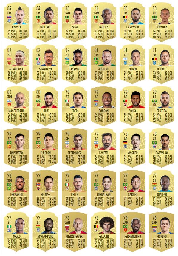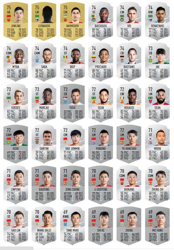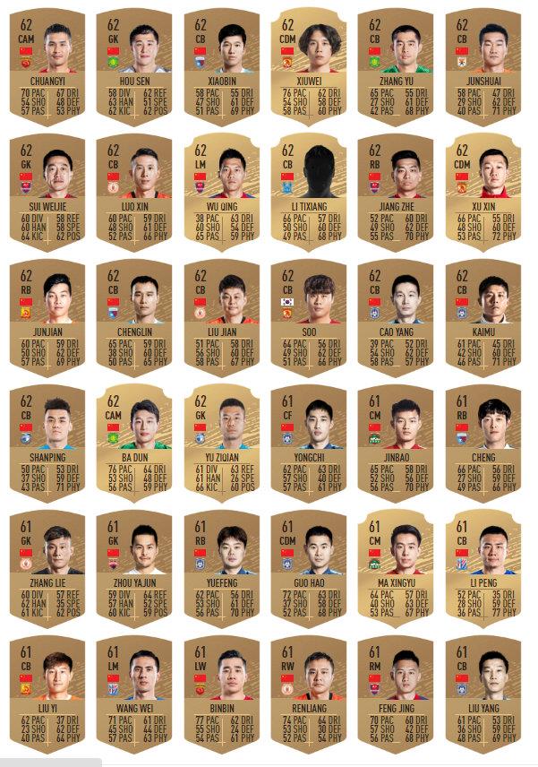 近日,足球游戏网站futhead曝光了《FIFA20》中中超球员的能力值。其中,哈姆西克与保利尼奥以84分并列第一,而中国球员中能力值最高的是艾克森79,其次是颜骏凌75。(下图为中超60分以上的球员)