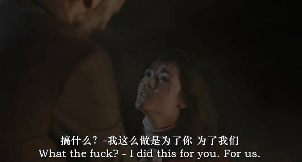 而特里西娅在与女主的交锋中,双方双双坠楼,扒在墙沿,一个演着父女情深的戏,一个疯狂道出真相以期丈夫可以醒悟。