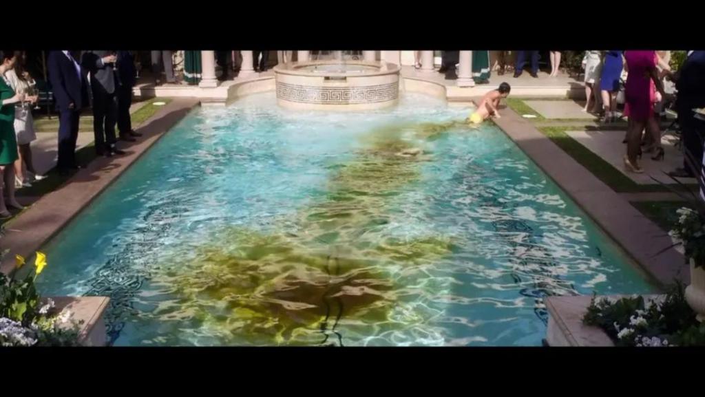 结果跳进泳池,想要效法当年男神出浴,没想到焗上去的油掉色了。