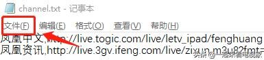 4、将txt文件编辑好以后,在菜单栏的文件里选择编码为“UTF-8”方式的“channel.txt”。