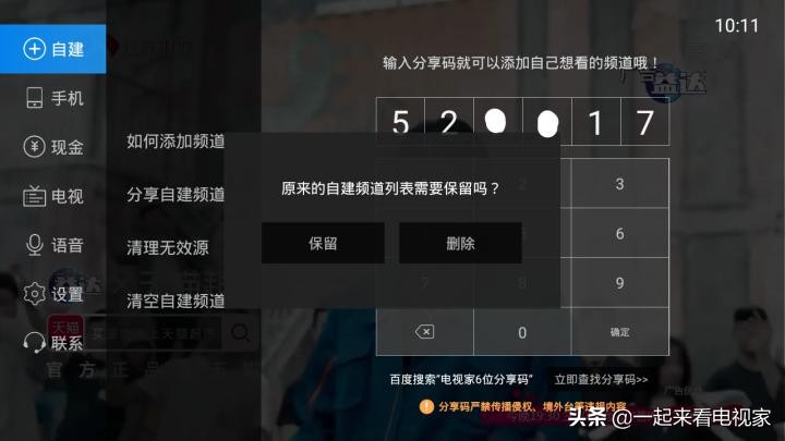 给电视直播软件添加自建频道,分享码去哪里找?