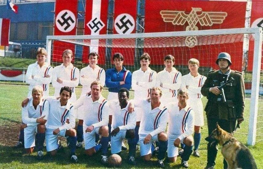 这是一部二战战俘题材的电影,德国战俘营中,德军准备组织一场由德军足球队和战俘足球队的比赛。而战俘们也试图利用这次比赛越狱。当然,最终的结果,战俘球队战胜了德军球队,战俘们也胜利大逃亡了。