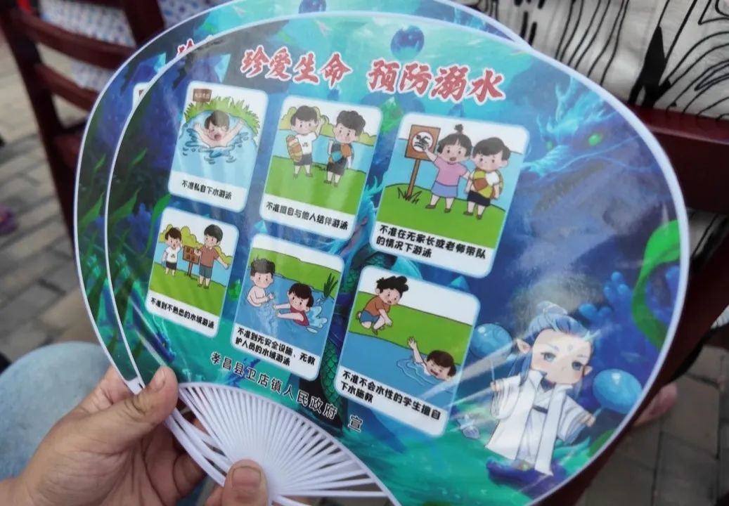 “中小学生马上就要放暑假了,我们提前谋划防溺水工作,印制了防溺水安全以及应急安全知识的宣传扇子,结合送电影下乡防溺水主题系列宣讲活动,既送清凉又送安全。同时还设置了趣味互动问答环节,村民踊跃参与,在轻松氛围中宣传了各种安全知识,进一步提升了大家的安全意识。”卫店镇综合执法中心干部向濠说。