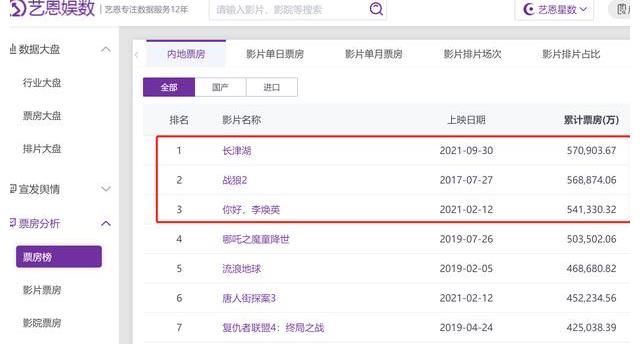 - 主旋律:长津湖、战狼2、红海行动