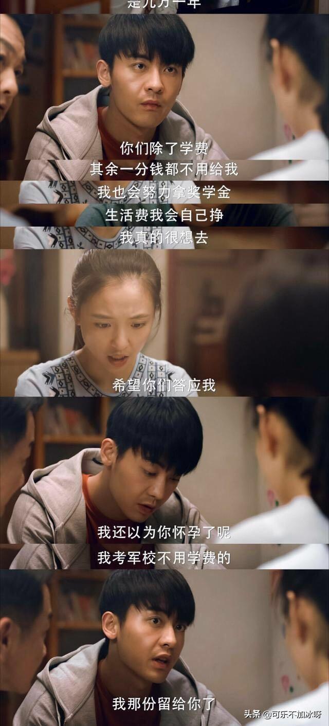 乔一跟言默相约去英国留学,她跟家里人提出自己的想法之后,以为家里人会反对,因为学费昂贵,哥哥赵观潮知道妹妹会有顾虑,立即说:“我考军校不用学费的,我那份留给你了”。