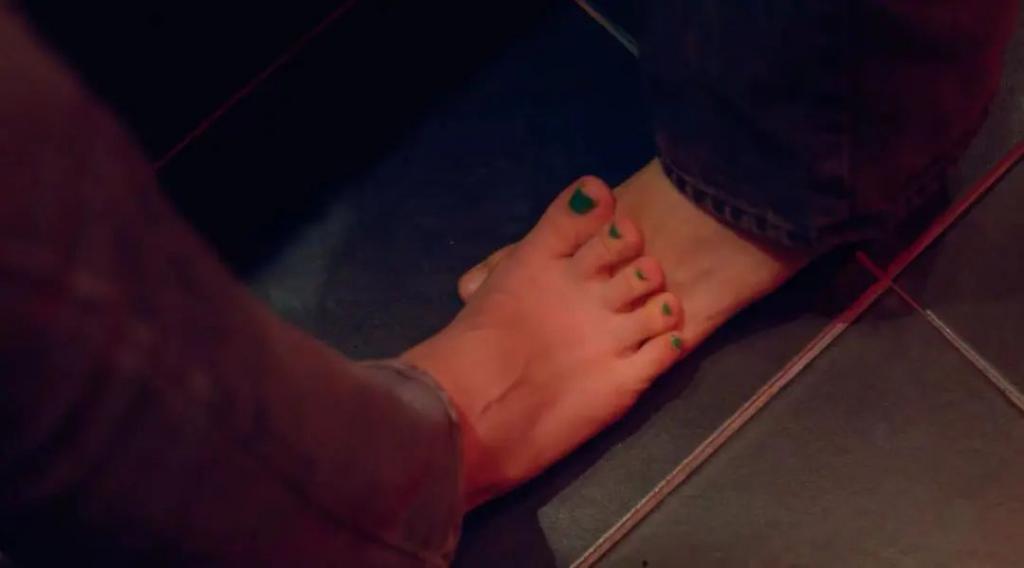 包括后面绿发女孩不时光着脚、像抚摸小孩一样抚摸自己的头,甚至为了反抗同一种压迫,推了会欺辱静霞的所谓丈夫下楼,都跟静霞母亲的特质一一对应。