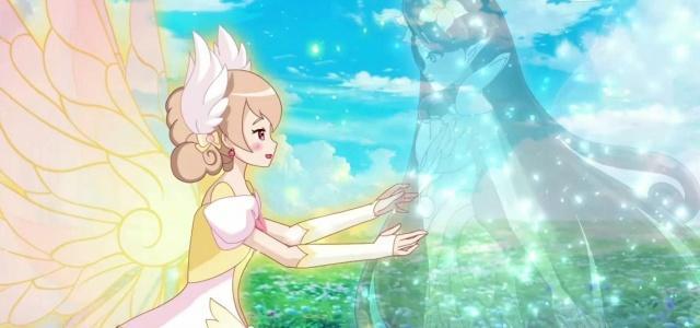 在被黑暗魔神附身之前,安琪儿女神将自己利用天空树孕育的希望雪城爱送会到了过去,让雪城爱去寻找过去的夏安安的帮助,夏安安也就是安琪儿女神的过去,夏安安是命定的花仙魔法使者,从遇到了库库鲁开始,就在无怨无悔的收集花仙精灵王,所以得以在未来世界成为了安琪儿女神,下面画船人带来《小花仙》中的抱抱,库库鲁和夏安安如同王子和公主,椿最可怜。