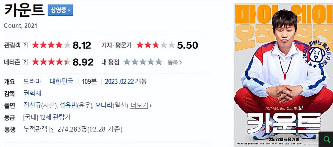 这部新片就是《倒计时》,是一部拳击题材的电影作品,由陈善圭、吴娜拉、成侑彬等主演,2月底就在韩国上映了。