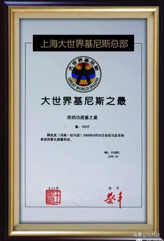 释延武的“铁裆功载入《世界名人录》和世界功夫吉尼斯纪录
