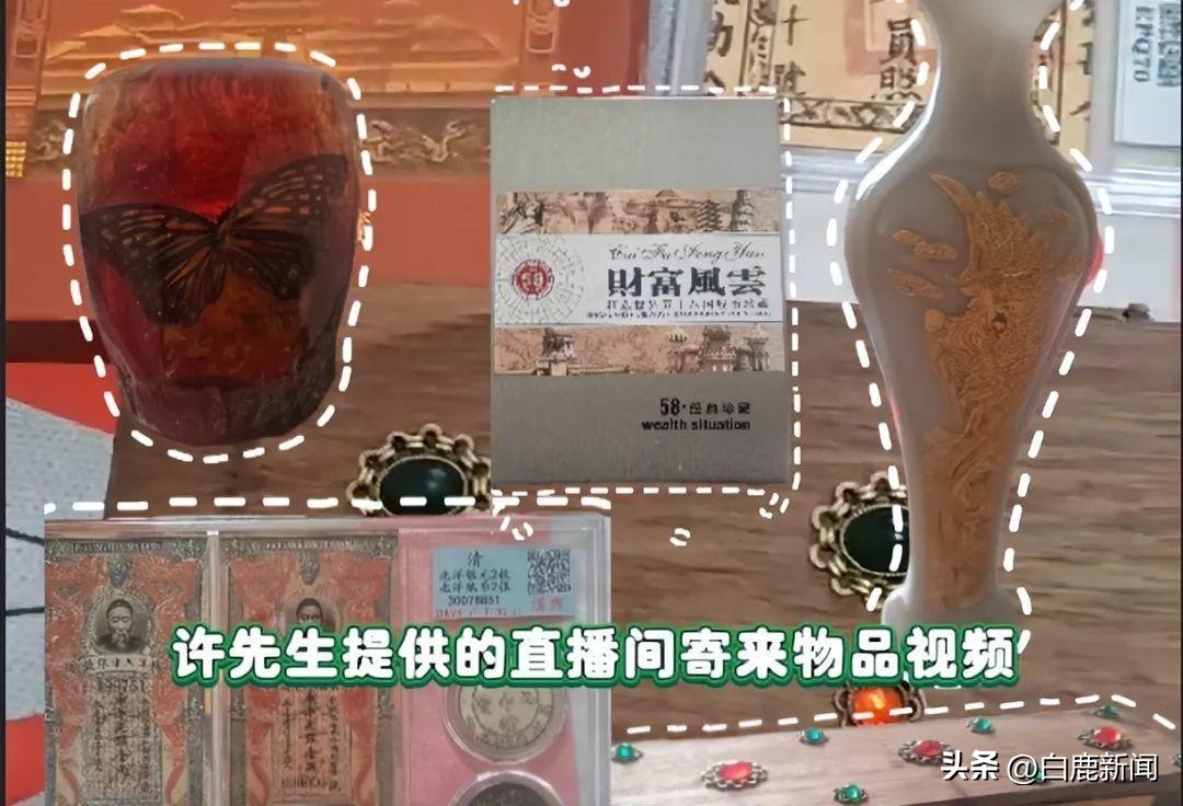 许先生提供了直播间寄来的物品视频,华商报大风新闻记者看到,其家中,各式各样的收藏品已堆满,每种款式都有很多相同的。这些纪念品,在拼多多、淘宝等网购平台可搜到同款,“圣旨”39.4元、“李鸿章头像纪念币”34.4元、“琥珀蜜蜡蝴蝶摆件”29元、“夜光龙凤花瓶”35.8元、“财富风云精选世界五十八国钱币珍藏”52.38元、“国家宝藏十大传世名画”72.75元……