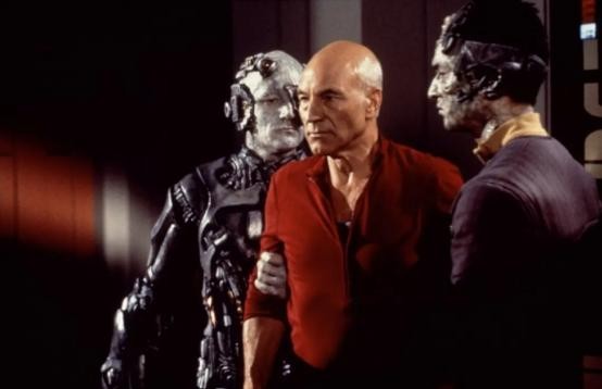 基于《星际迷航:下一代》开发的几部《星际迷航》电影(第七部至第十部)也同样可圈可点。在《星际迷航7:星空奇兵》(Star Trek:Generations 1994)中,《原初系列》里的寇克船长和《下一代》中的皮卡德船长,两位相隔百年的船长竟然在同一时空相遇——至于怎么做到的就不剧透了。