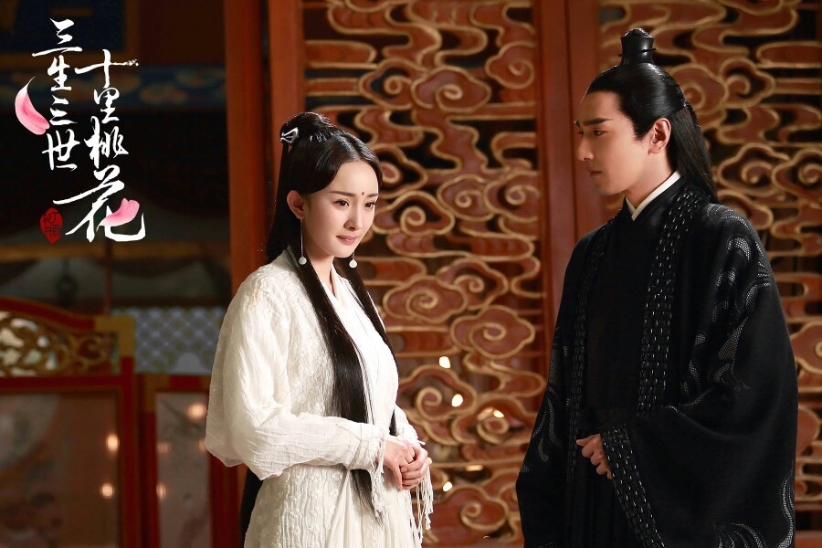 杨幂在这场剧中也就出现了两次,一次是凤九下凡回来正好碰到回到青丘备嫁的白浅,第二次就是白浅从青丘出嫁拜别狐帝狐后。
