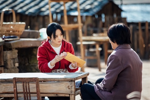 剧照中,赵丽颖将一头黑发盘起,身穿大红色的盘扣婚服,胸前还佩戴带着一朵红花。艳丽的大红唇也十分的耀眼。