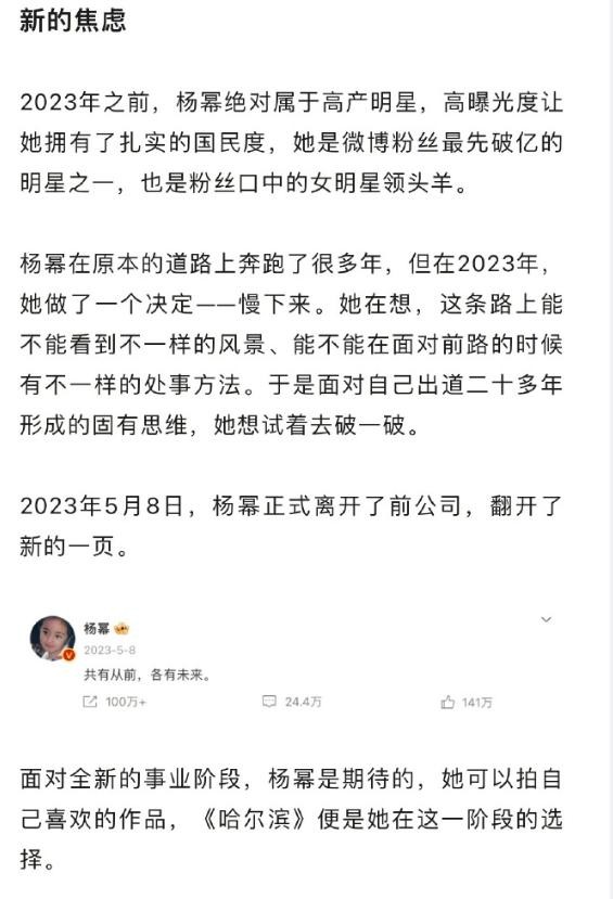 杨幂的粉丝表示:幂别着急 慢慢沉淀 大家也多一点宽容吧