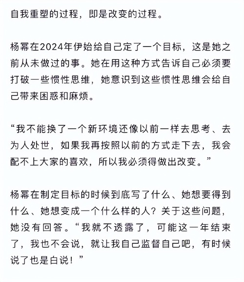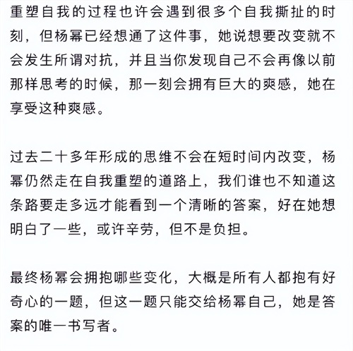 近日,知名女星杨幂也在采访中分享了她的自我剖析之旅,她表示这一过程让她觉得很爽。