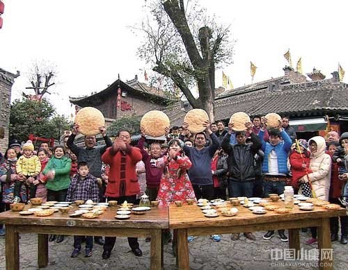 每一集节目,《文明密码》团队的每一位成员都会用尽情感,去和老乡们一起开心,一起守望。图为春节期间,出镜记者和陕西马嵬驿的乡亲们进行吃馍比赛。