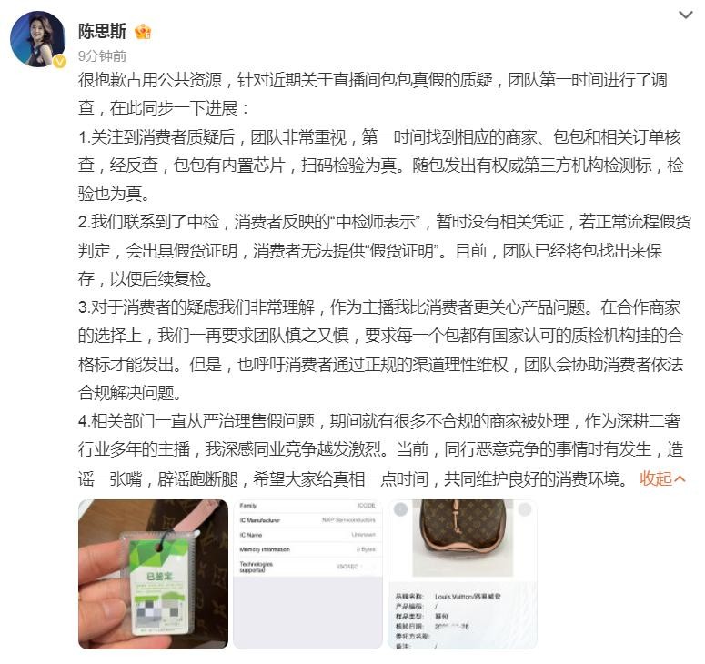 很抱歉占用公共资源,针对近期关于直播间包包真假的质疑,团队第一时间进行了调查,在此同步一下进展:
