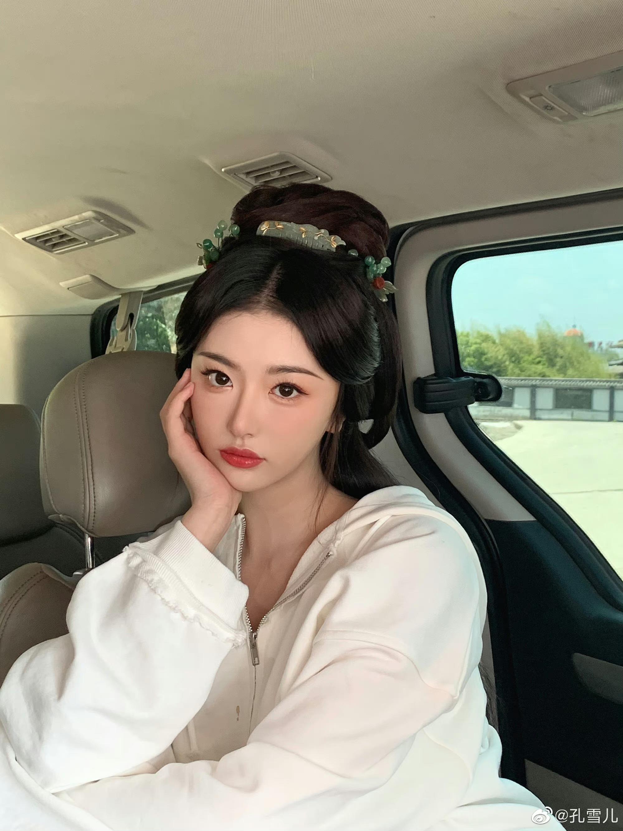 从孔雪儿日常晒出的照片看,她的现在装是妥妥的甜美型辣妹风格,跟古风美人丝毫不沾边。