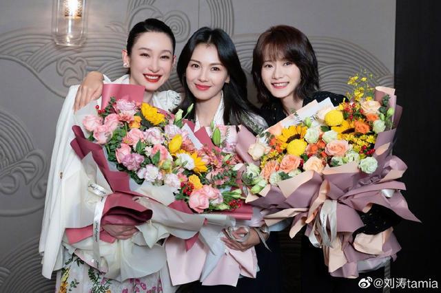 刘涛晒新剧杀青照 手捧鲜花与秦海璐刘宇宁等合影