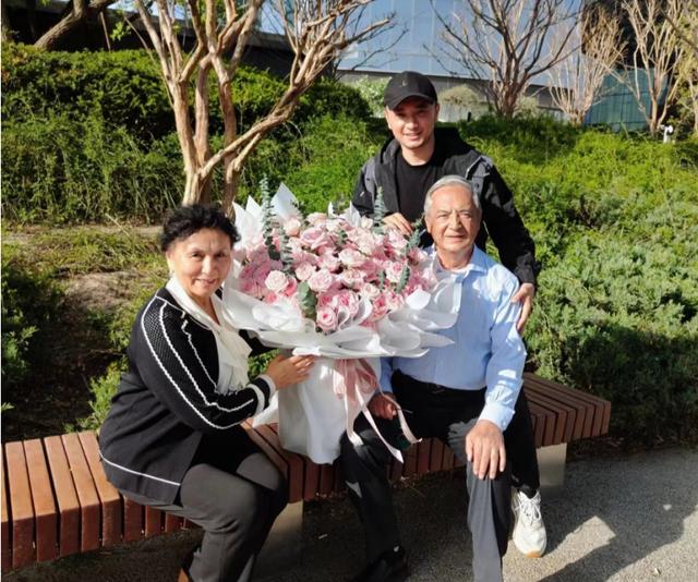 尼格买提一家还在公园路边留下了合影,他的父母抱着一捧巨大的花束,他则是站在父亲身后,扶着爸爸的肩膀,看得出一家人的关系非常的亲密。