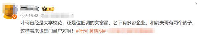 还有人爆料叶珂家世背景,称其自身就是一个低调的女富豪,名下有多家产业,还曾是大学校花,和黄晓明是门当户对。