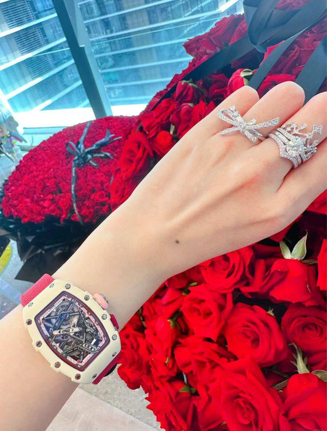 从叶珂日常晒照也能看出她生活比较奢华,随便一块表就要 300 万,甚至千万级别,晒名表的同时还要晒玫瑰花,过生日还晒出城堡和首饰,不知道是不是黄晓明送的呢?