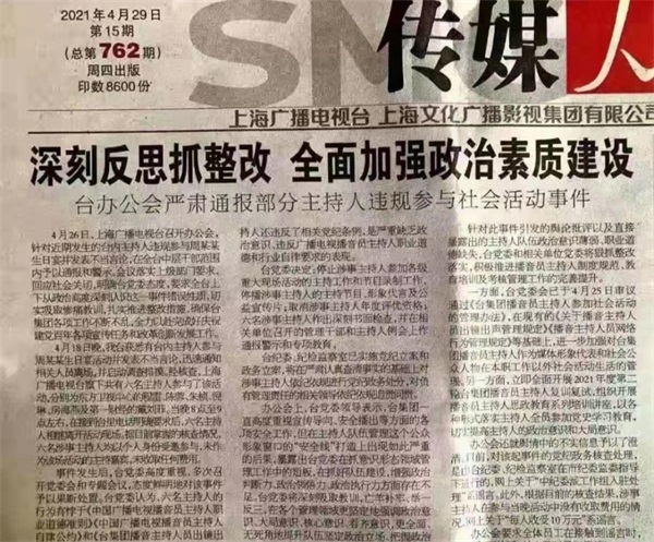 2025年4月,上海市宣传委发出一则公告,要求上海广播电视台约谈一场生日宴中的主持人。