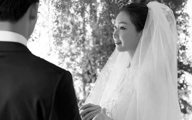 崔智友发布婚照,只让老公露出背影。(互联网)