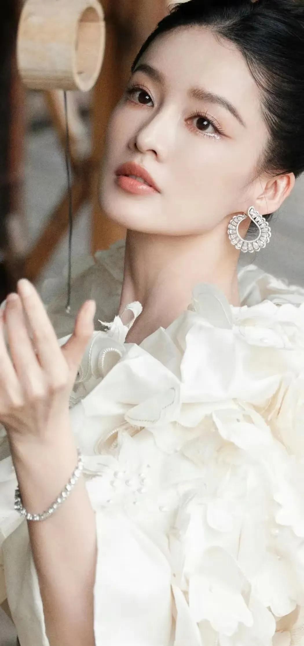 李沁的姿态优雅而自信,她微微侧身,目光坚定而深邃,仿佛在诉说着一个古老而神秘的故事。她的头发被精心盘起,几缕发丝自然垂落,增添了几分柔美与灵动。不仅展现了李沁的外在美,更透露出她内在的坚韧与优雅,让人不禁为之倾倒。