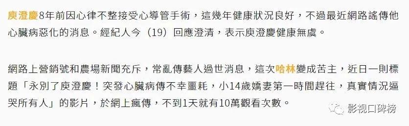 庾澄庆最近也遇到了这样的情况,一则大概是庾澄庆因为心脏病严重病发去世,娇妻第一时间奔赴现场的消息传得沸沸扬扬,标题也取得很好,让人想第一时间点进去看看。结果,只能说是 " 乌龙 "。这样的乌龙,怕是谁都不想要有的,要是庾澄庆现在当红,或者起码还在参加各种综艺,也不至于被造这样的谣。