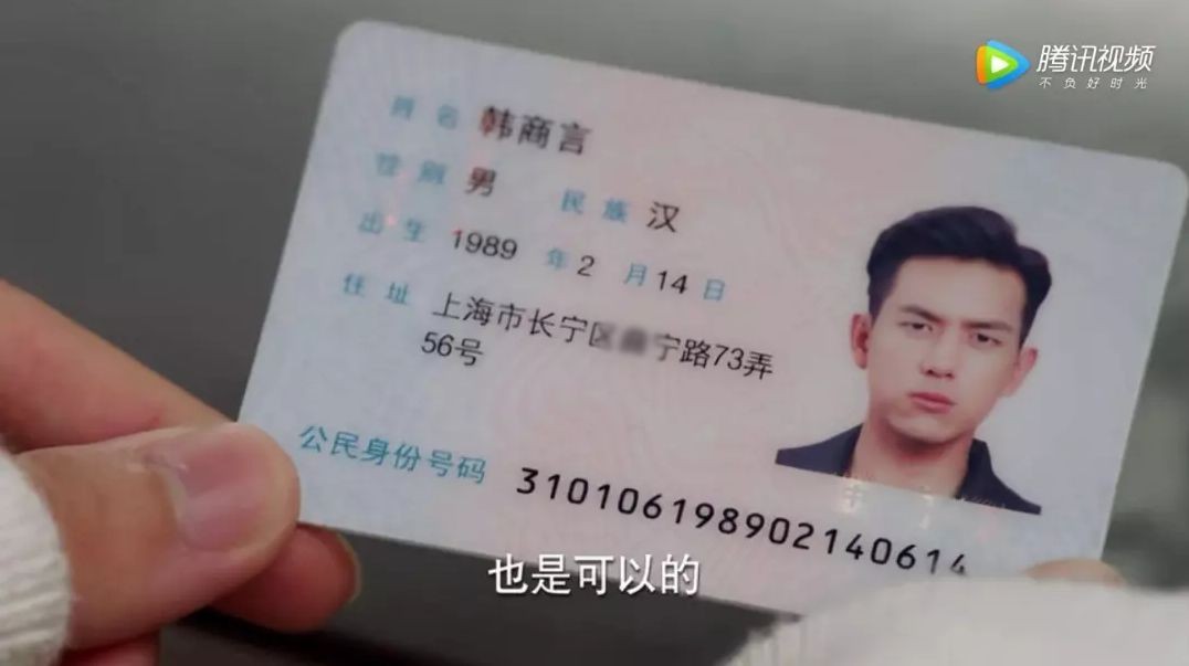 之所以在长宁区民政局领证,想必是由于韩商言正是长宁人。他的身份证上赫然写着“上海市长宁区曲宁路”。(虽然长宁没有曲宁路,310106也不是长宁的,但是小编坚决忽视这个bug,韩商言就是阿拉长宁的!)