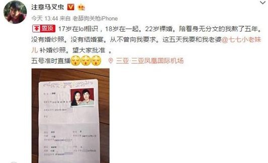 相恋4年后两人领了结婚证,在17年的5月2日骚男和七七举办了结婚典礼