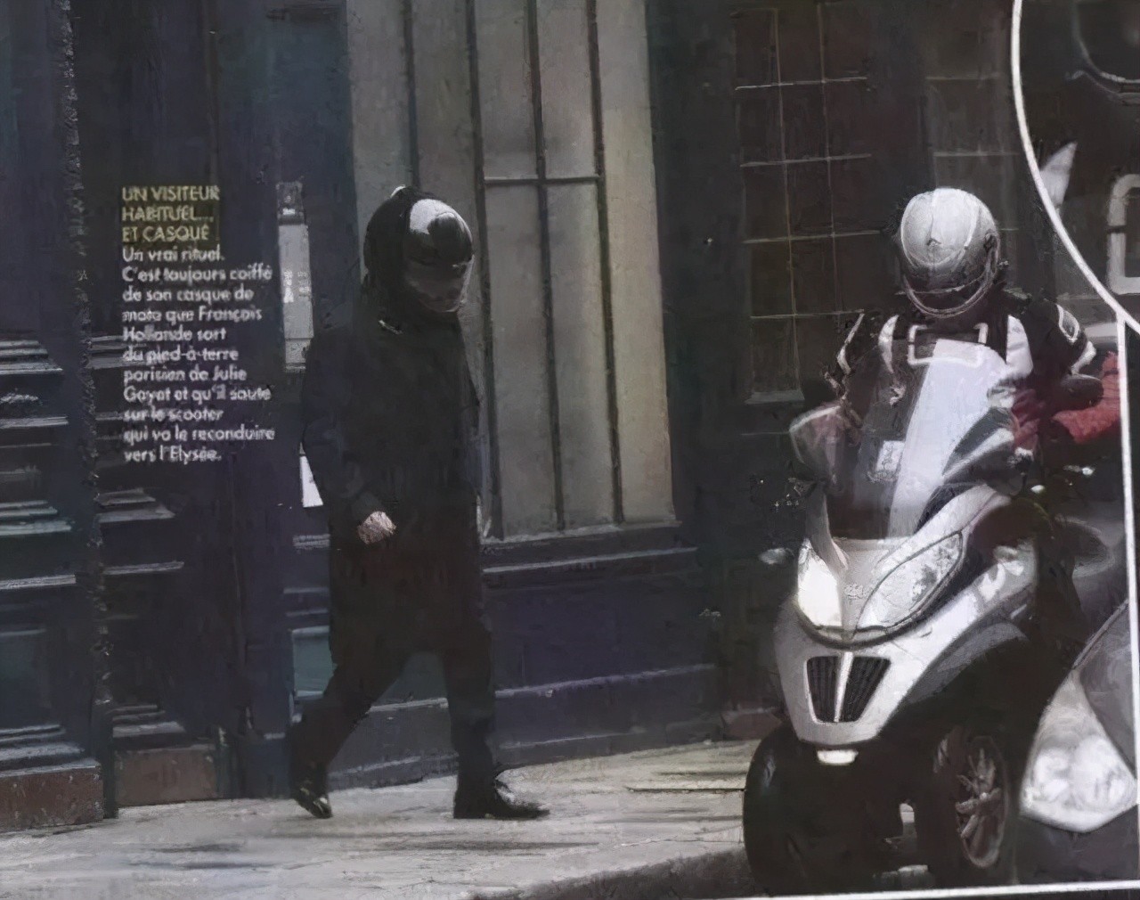 2013年12月,有人发现奥朗德戴着头盔,扮成外卖员的样子,骑着摩托前往演员朱莉的公寓。奥朗德行踪被人发现,于是有人把奥朗德夜会女演员朱莉的照片被送到爱丽舍宫。