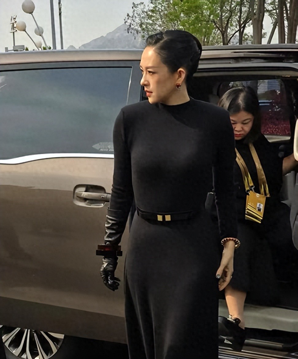 其实纯黑色的紧身连衣裙并不是很好驾驭,但章子怡整体身材偏瘦又很高挑,随随便便穿上一条黑色的连衣裙裙都会格外具有超模的气场。