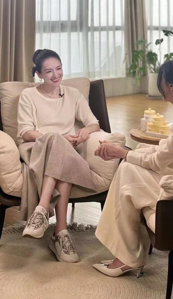 下半身章子怡选择了一条卡其色的半身裙,和上衣的米白色搭配融合得很好,这一身造型不仅兼具优雅,而且松弛感十足,的确是休闲造型的不二选择。