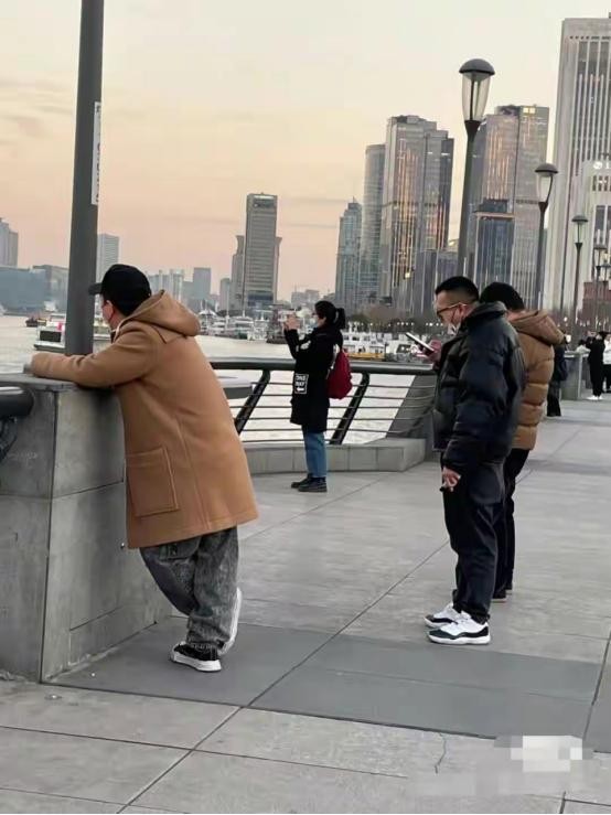照片当中,黄渤穿着棕色大衣,戴着帽子口罩,把自己包裹得严严实实的,虽然是站在外滩,但看起来他并不是很想欣赏景色,反倒是百无聊赖的靠在围栏处一个人发呆,不知道在想些什么,而且看起来更像是在等人。在他的身边还有两个人,只不过他们几个站得都有些远,不仔细看的话,确实是很难发现是一起的。