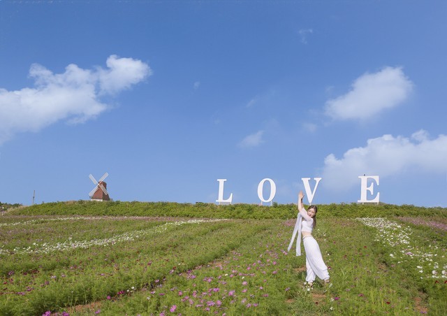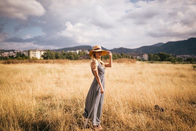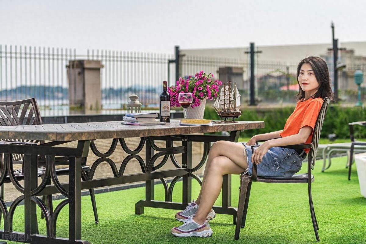当拍摄美女外景照片时,自然漂亮的姿势为照片增色不少。